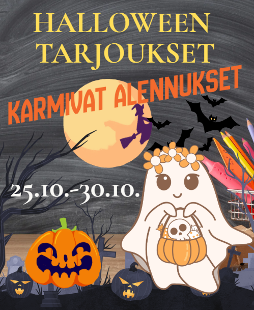 Halloween viikkoa vietetään nyt tarjousten kera. Kaikista takeista saat 30%n alennuksen, kaulahuivit,pipot, hanskat ja tumput 15%n alennuksella. Laukut, lompakot ja laukkujen irtohihnat 20%n alennuksella.. Huomioi, että tarjoukset loppuvat perjantaihin sillä lauantai on Pyhäinpäivä ja kauppa on kiinni.